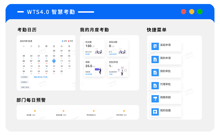 传统的考勤方式通常需要管理员手动处理和记录考勤数据,并且需要花费大量的时间和人力资源来处理和核实。而劳勤考勤管理软件通过自动记录员工的上下班时间、迟到早退情况和加班时长等信息,有效减少了手工记录和人为错误,提高了考勤数据的准确性。系统支持考勤数据实时上传,自动运算避免数据滞后,确保员工工时数据及时性,强大考勤规则配置功能自动对应人员考勤、排班、加班、请假规则自动实时运算,提供精确和实时工时数据