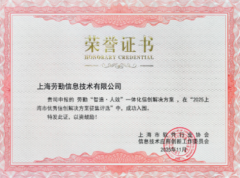 近日,“2025年上海市优秀信创解决方案”遴选结果正式公布。劳勤凭借【“智造 · 人效”一体化信创解决方案】,入选2025年上海市优秀信创解决方案!